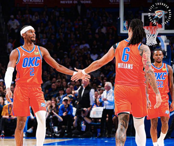 雷霆作為衛冕冠軍,新賽季上來(lái)狀態(tài)火熱,在缺少杰倫·威廉姆斯的情況下,豪取一波8連勝,被開(kāi)拓者終結連勝后,又接連擊敗國王、灰熊和勇士取得了3連勝。這次他們是背靠背作戰,不過(guò)前一場(chǎng)消耗并不大,與勇士一戰三節打完就奠定勝局,亞歷山大三節拿到28分11助攻。目前雷霆戰績(jì)?yōu)?1勝1負,排在聯(lián)盟第一的位置。